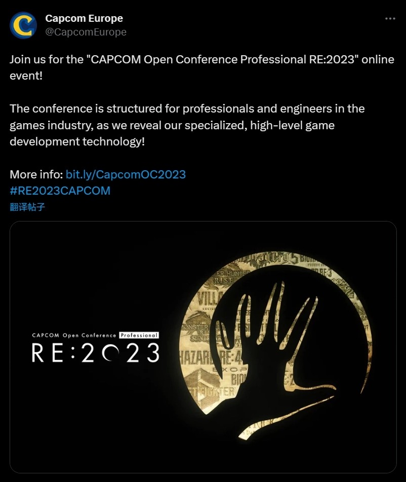 卡普空(Capcom)日前在 X 平臺發(fā)布貼文,公布了“CAPCOM Open Conference Professional RE:2023”開發(fā)者大會,會議據(jù)稱將邀請了游戲行業(yè)的專業(yè)人士和工程師參加,目的是展示卡普空旗下的 RE 引擎。