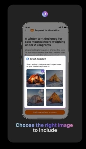 其中,圖搜功能可同時根據(jù)用戶上傳圖片和文字描述匹配到自己有需求的產(chǎn)品,“智能溝通”可通過 AI 對交流中的重要信息進(jìn)行匯總,而升級的 RFQ 則可以幫助用戶為目標(biāo)產(chǎn)品一次性補(bǔ)充信息,或者匹配產(chǎn)品圖片。