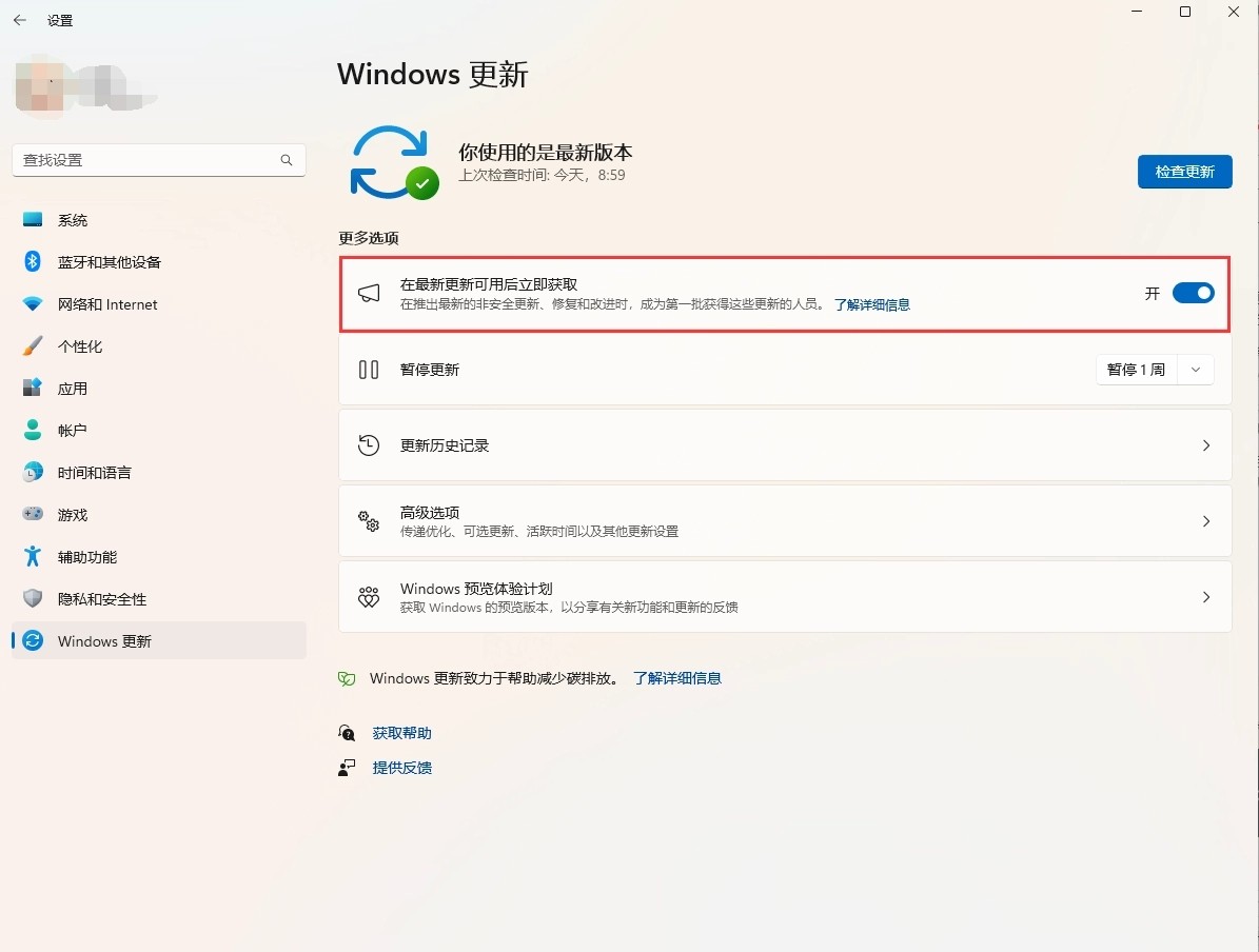 但這種策略是分批推送的,而目前有很多用戶不喜歡等待,于是微軟便引入了“在最新更新可用后立即獲取”開(kāi)關(guān),從而讓用戶能夠跳過(guò)等待并立即獲取新功能。