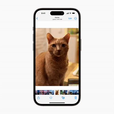 在照片 App 中,人物相冊使用設(shè)備端機(jī)器學(xué)習(xí)識別用戶親近之人的更多照片,同時可識別更多貓狗照片。
