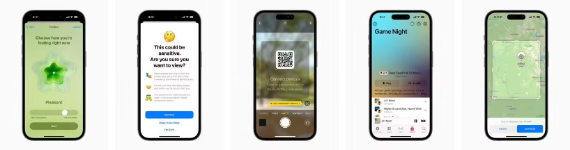 健康 App 帶來了全新精神健康功能。用戶可記錄自己的每日心情和暫時性情緒;查看哪些因素在影響自己的精神狀態(tài);輕松訪問通常在診所中使用的抑郁和焦慮評估手段,以及其他本地可用資源。此外,增加設(shè)備與眼睛之間的距離有助于降低兒童患近視的風(fēng)險,并幫助成人用戶緩解數(shù)字眼疲勞癥狀。屏幕使用時間的屏幕距離功能會利用原深感攝像頭,在設(shè)備距離用戶面部不足 12 英寸(30.48 厘米)達(dá)一段時間后,鼓勵用戶將設(shè)備移遠(yuǎn)。