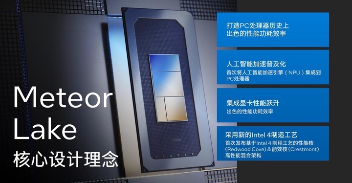 Meteor Lake 處理器采用英特爾 Intel 4(7nm)制程工藝,是英特爾迄今為止能效最高的客戶端處理器,并提供廣泛的 AI 支持。