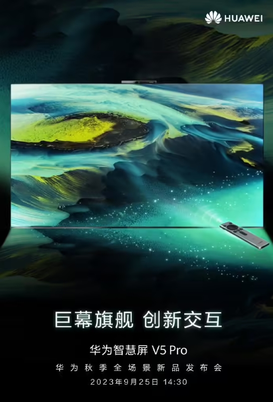 華為今日宣布,將于 9 月 25 日的秋季全場景新品發(fā)布會推出“華為智慧屏 V5 Pro”。