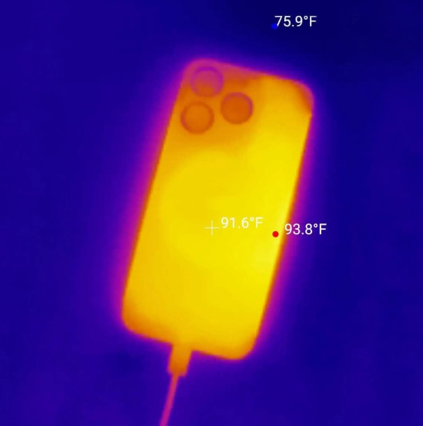 而在升級(jí) iOS 17.0.3 系統(tǒng)之后,iPhone 15 Pro 和 iPhone 15 Pro Max 在充電狀態(tài)下最高溫度為 93.8 華氏(34.3 攝氏度),溫度在 85-95 華氏之間。
