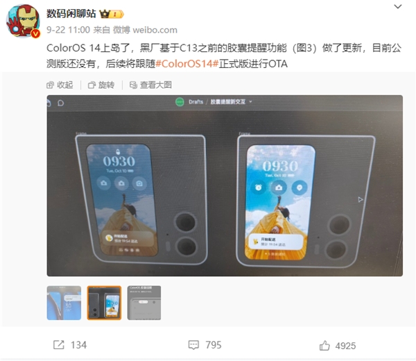 爆料稱,ColorOS 14的“類靈動島”功能是基于ColorOS 13之前的膠囊提醒功能進行更新,后者可以讓重要通知在狀態(tài)欄膠囊進行提醒。