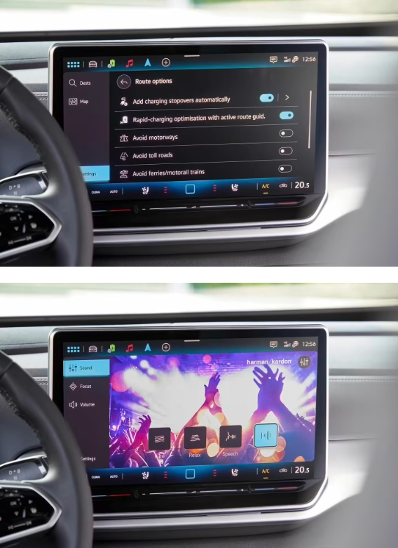 其他方面,大眾還為空調(diào)和音量滑塊加入燈效,并為用戶帶來了基于新操作邏輯的多功能方向盤。大眾還帶來了新的 IDA 語音助手、Harman Kardon 音響系統(tǒng)、480W 音樂輸出功率和 10 個揚聲器(包括中置揚聲器和低音炮)。