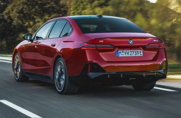 走至車尾,i5 M60 的尾部線條又回歸了「狂野」的一面,與過往車型截然不同的地方出現(xiàn)在這臺(tái)轎車的尾箱位置,從視覺上來看,新尾箱設(shè)計(jì)更加短促緊致。這與寶馬的設(shè)計(jì)理念緊密相關(guān),談到了 i5 尾部垂直銳利的線條設(shè)計(jì)初衷,Christopher Weil 透露靈感來自于寶馬過去的 E12 5 系車型,寶馬設(shè)計(jì)團(tuán)隊(duì)重新將這個(gè)復(fù)古元素帶了回來。Weil 表示,寶馬更希望用現(xiàn)代化的手法重現(xiàn)復(fù)古,而并非是「冰冷」地生搬硬套,內(nèi)部團(tuán)隊(duì)認(rèn)為他們?cè)?i5 M60 上面很好地完成了這個(gè)目標(biāo)。