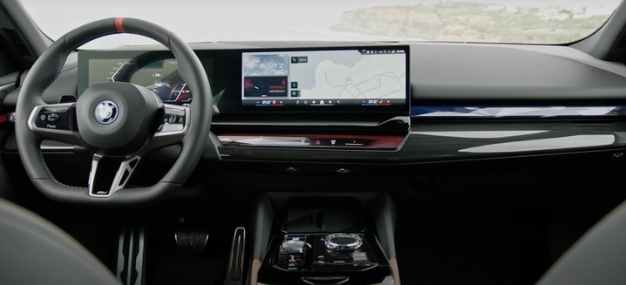 如果說外觀是復(fù)古和現(xiàn)代化的結(jié)合,那么在車內(nèi),寶馬就將現(xiàn)代化進(jìn)行到底了。坐進(jìn) i5 M60 的車內(nèi),寶馬幾乎移除了大部分的實(shí)體物理按鍵,取而代之的是更多的虛擬按鍵。Christopher Weil 解釋道,去物理化會(huì)是現(xiàn)代感一種很好的表現(xiàn)手段,借助中控屏幕以及虛擬按鍵,某些功能能夠得到更精確的控制,而大部分的車載功能可以由中控+語音承擔(dān)。