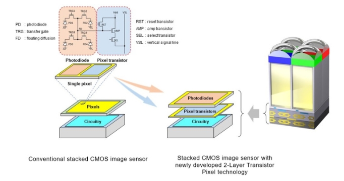 官方資料顯示,雙層晶體管像素技術(shù)可以將飽和信號量約提升至原來的2倍,擴大動態(tài)范圍的同時降低噪點,從而顯著提高成像性能。