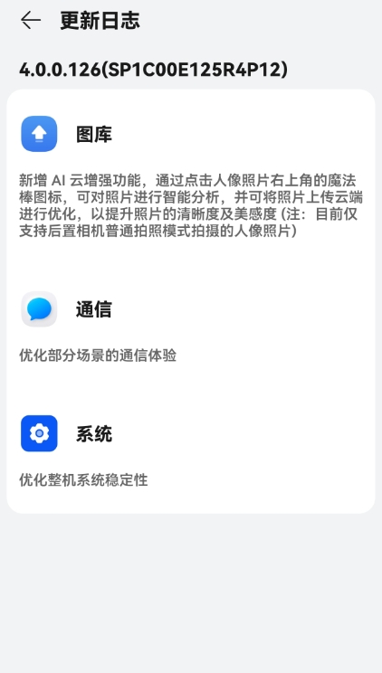 除此以外,126版本更新還優(yōu)化了部分場景通信體驗、優(yōu)化了整機(jī)系統(tǒng)穩(wěn)定性。