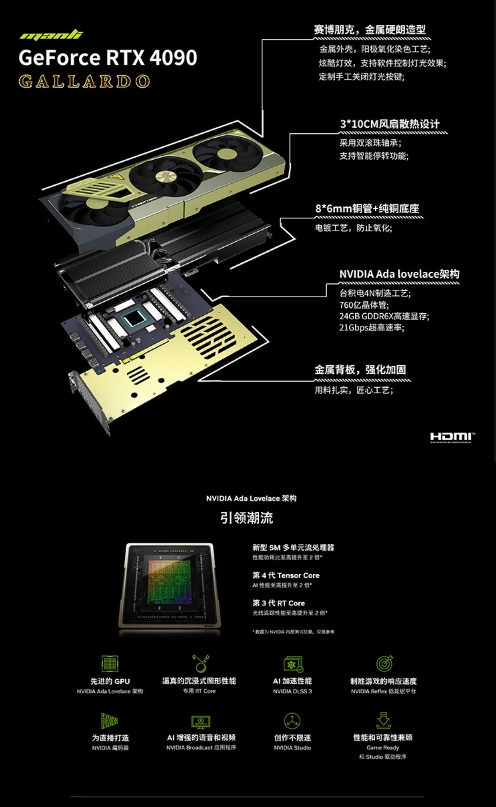 官方表示,這款顯卡采用賽博朋克風(fēng)格的金屬硬朗造型,金屬外殼經(jīng)由陽極氧化染色工藝處理。具備炫酷燈效,支持軟件控制燈光效果。
