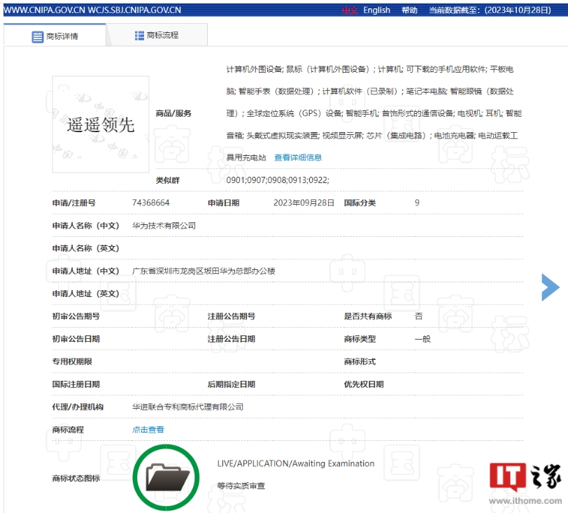 近日,華為技術(shù)有限公司申請注冊“遙遙領(lǐng)先”商標(biāo),國際分類為運(yùn)輸工具、科學(xué)儀器,當(dāng)前商標(biāo)狀態(tài)為等待實(shí)質(zhì)審查。近期,因華為 Mate60 系列手機(jī)發(fā)售,“遙遙領(lǐng)先”成為網(wǎng)絡(luò)熱詞。
