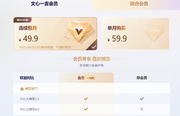 文心一言會員權(quán)益: