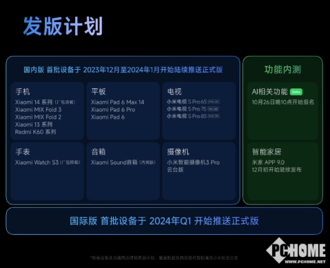 近日,小米官方對外宣布,小米澎湃OS開發(fā)版首批機型將于2023年11月中下旬推送,首批機型包括小米14、小米14 Pro、小米MIX Fold 3、小米MIX Fold 2、小米13 Ultra、小米13 Pro、小米13、Redmi K60 Pro、Redmi K60九款手機。