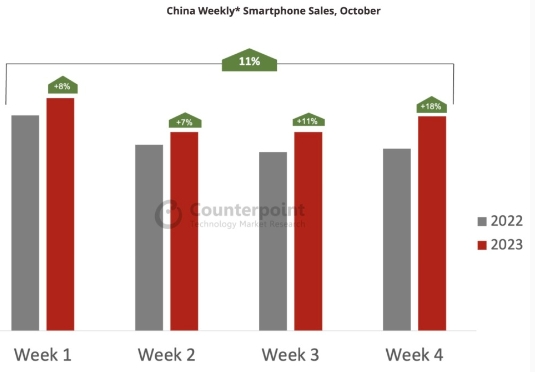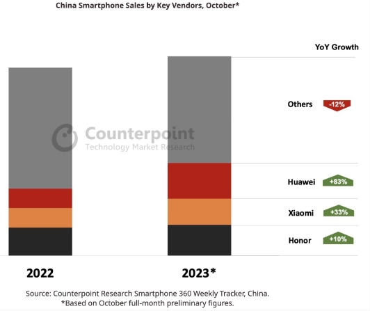 該機(jī)構(gòu)分析師表示:“在 10 月份,華為憑借其 Mate 60 系列設(shè)備實現(xiàn)了扭虧為盈。隨著新的市場營銷和媒體對其‘中國制造’芯片組的大力報道,該公司的增長始終都很強(qiáng)勁。需求繼續(xù)保持在兩位數(shù)的高位,我們也看到了光環(huán)效應(yīng),公司的其他機(jī)型表現(xiàn)良好。”
