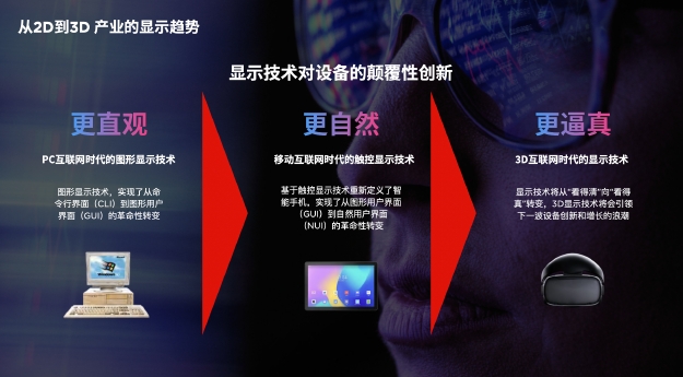 當(dāng)前,3D互聯(lián)網(wǎng)時(shí)代,顯示技術(shù)的進(jìn)化開始由“看得清”向“看得真”轉(zhuǎn)變,人們透過屏幕看到鮮活立體影像,真正實(shí)現(xiàn)所思即所見,所見即所得。盡管3D技術(shù)為新一代顯示設(shè)備錨定了方向,但是技術(shù)的成熟還需要在硬件設(shè)備上真正落地和適配,并滿足用戶多元化場景需求,才能真正讓技術(shù)創(chuàng)新用戶體驗(yàn)。