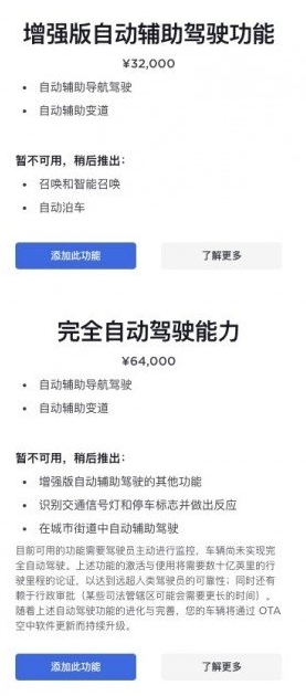 FSD為完全自動駕駛能力,在EAP的基礎上增加了識別交通信號燈和停車標志并做出反應的能力,以及在城市街道中自動輔助駕駛等功能,目前在國內(nèi)售價為6.4萬元。