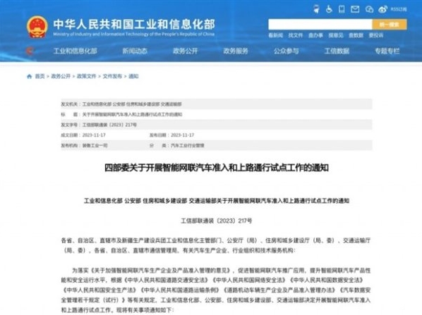 通知指出,將遴選具備量產(chǎn)條件的搭載自動駕駛功能的智能網(wǎng)聯(lián)汽車產(chǎn)品,開展準入試點;對取得準入的智能網(wǎng)聯(lián)汽車產(chǎn)品,在限定區(qū)域內(nèi)開展上路通行試點。