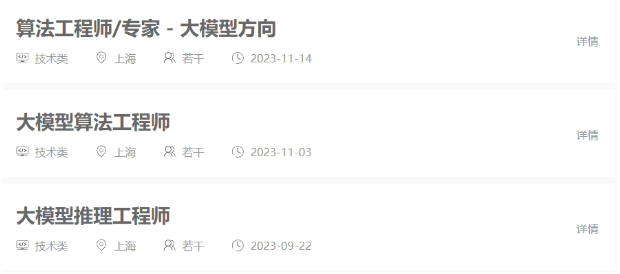 其中,一個(gè)名為“大模型算法”的職位下面介紹稱:要求對(duì)對(duì) LLM、多模態(tài)、多語(yǔ)言有深入理解和實(shí)踐,在模型預(yù)訓(xùn)練、性能調(diào)優(yōu)、內(nèi)容生成方向有實(shí)際應(yīng)用或項(xiàng)目經(jīng)驗(yàn);熟悉常見(jiàn)的深度學(xué)習(xí)算法,如 LSTM、Bert 等,熟悉 TenserFlow、PyTorch、Keras、MxNet 等。