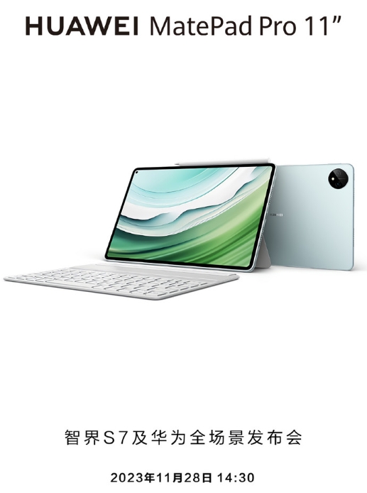 11 月 22 日,華為官方正式宣布,智界 S7 及華為全場景發(fā)布會將于 11 月 28 日 14:30 舉行,新款 MatePad Pro 11 英寸即將亮相。
