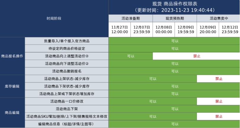 賣家報名:2023 年 11 月 27 日 12:00:00-2023 年 12 月 12 日 23:59:59