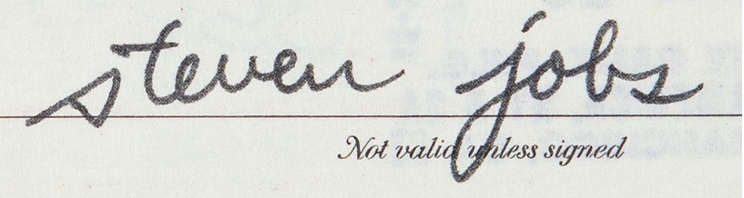 這張支票的標(biāo)題是“蘋(píng)果電腦公司”,使用了蘋(píng)果的第一個(gè)官方地址,地址是“770 Welch Rd.,Ste. 154,Palo Alto”。