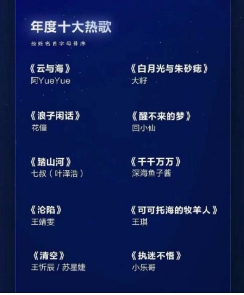 同樣在 2021 年,騰訊音樂自家公布的年度歌曲榜單中,十首歌全是被貼上“抖音神曲”標(biāo)簽的大熱作品,背后的歌手們除王靖雯外,全部帶有“抖音音樂人”的官方認(rèn)證。而王靖雯雖無認(rèn)證,卻也是抖音平臺中作用數(shù)百萬粉絲的頭部網(wǎng)紅。