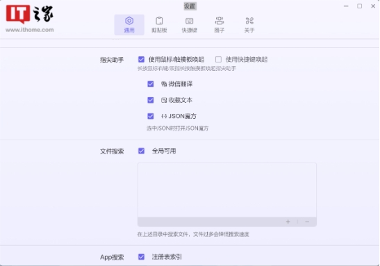 小微助手除了基礎的搜索功能外,還支持指尖助手、微信翻譯、JSON 魔方和閃念膠囊功能。