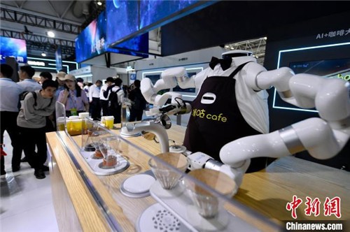福州5月25日電 (記者 龍敏)先取豆磨豆,再燜蒸沖泡,遞給你一杯咖啡,最后還能清洗杯子……走進(jìn)正在福州舉辦的第七屆數(shù)字中國建設(shè)峰會現(xiàn)場展示區(qū),雙臂六軸機(jī)器人“AI咖大師”在展位現(xiàn)場服務(wù)著八方來客。展位工作人員夏怡然向中新網(wǎng)記者介紹,機(jī)器咖啡師的沖調(diào)“手法”對標(biāo)的是世界咖啡大賽冠軍。