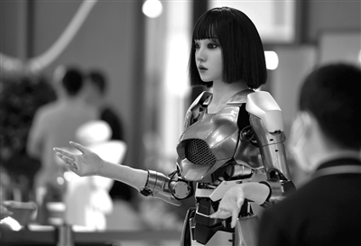 在第七屆數(shù)字中國建設(shè)峰會現(xiàn)場體驗區(qū),超仿生人形機器人“小柒”在向觀眾致意。新華社記者 魏培全 攝