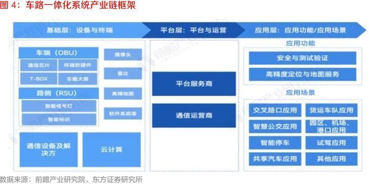 東方證券認為,車路協(xié)同產(chǎn)業(yè)已經(jīng)構(gòu)建起成熟的生態(tài)體系,分別為基礎層、平臺層和應用層。