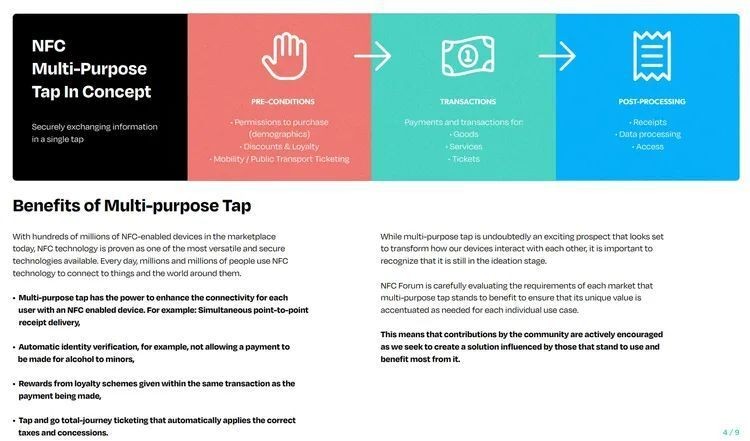 IT之家 7 月 2 日消息,近場通信(NFC)技術(shù)即將引入全新的“Multi-Purpose Tap”功能,讓用戶使用智能手機、智能手表 NFC 功能時,可以同時完成多項功能。