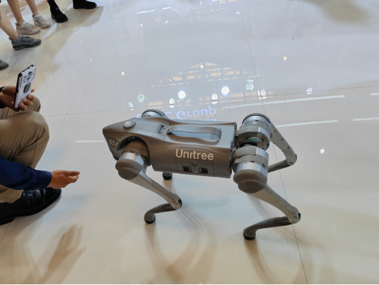 一家科技公司展臺(tái)上的一只機(jī)器狗,熟練地與周?chē)^眾互動(dòng)。和我們以往在視頻短片中看到的用于技術(shù)和性能演示的機(jī)器狗不同,這款產(chǎn)品是已經(jīng)正式在網(wǎng)上銷(xiāo)售,主打仿生陪伴功能的機(jī)器狗。