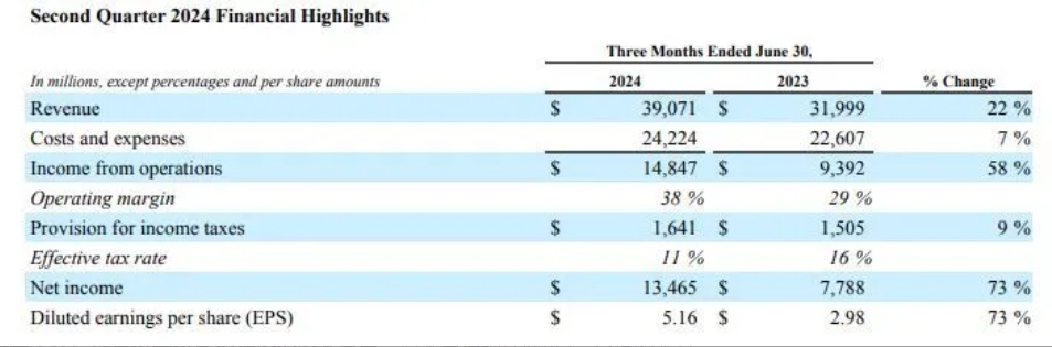 運營利潤:同比增長58%至148.5億美元,高于市場預(yù)期的145.9億美元。運營利潤率從上年同期的29%增至38%。