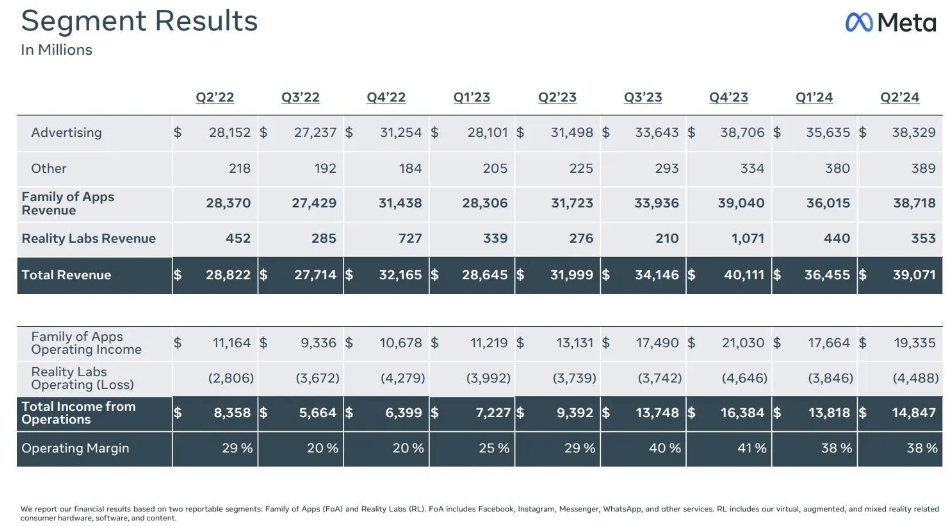 7月31日周三美股盤后,“元宇宙平臺”、大舉押注AI的社交媒體與數(shù)字廣告巨頭Meta公布了2024財年第二季度財報。