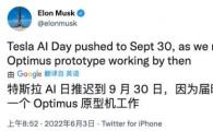 特斯拉 CEO 埃隆?馬斯克在推特發(fā)文稱,第二屆特斯拉 AI 日(人工智能日)活動推遲到 9 月 30 日,屆時可能會有一臺人形機器人擎