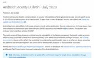 今天谷歌發(fā)布了新的安全公告,Android 系統(tǒng)迎來 2020-07-01 和 2020-07-05 兩個(gè)安全補(bǔ)丁,都是解決棘手的安全漏洞。 據(jù)公布的