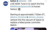 美國國家航空航天局(NASA)在 Twitter 上宣布,實現(xiàn)了首次全女性宇航員太空行走。本次太空行走由女性宇航員杰西卡·梅爾和女性宇航員