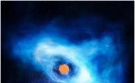 脈沖星及脈沖星風(fēng)云系統(tǒng)的示意圖,中間的橙色部分代表脈沖星(僅為示意繪制,天體大小不反映實(shí)際比例)?! ∮浾?7日從中國(guó)科學(xué)院高能物