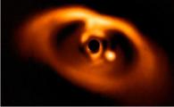 圖說:這是天文學家第一次捕捉到行星正在形成時的畫面。圖片中心故意用黑色擋住的部分就是 PDS 70 恒星,其右側(cè)的亮點就是 PDS 70