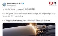 跟蹤蘋果產(chǎn)業(yè)鏈多年的分析師郭明錤今日發(fā)布報(bào)告指出,CNC(數(shù)控機(jī)床)在蘋果開始采用后快速成長(zhǎng),3D 打印有可能會(huì)復(fù)制此成功故事。關(guān)鍵供應(yīng)商為激光零部件的 IPG Photonics,以及 3D 打印機(jī)供應(yīng)