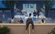 三星本周發(fā)布了一個(gè)新的反蘋果的圍欄上廣告,再次嘲笑蘋果缺乏可折疊設(shè)備。圖片來自網(wǎng)絡(luò) 侵刪 在該廣告中,一名男子坐在圍欄上,俯